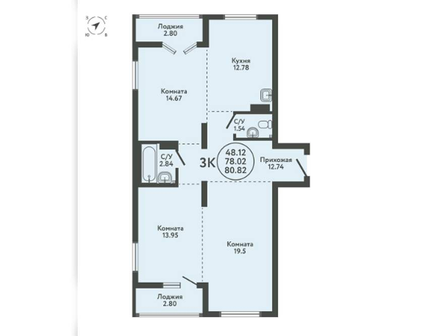 Продам трехкомнатную квартиру 80.8 м.кв.